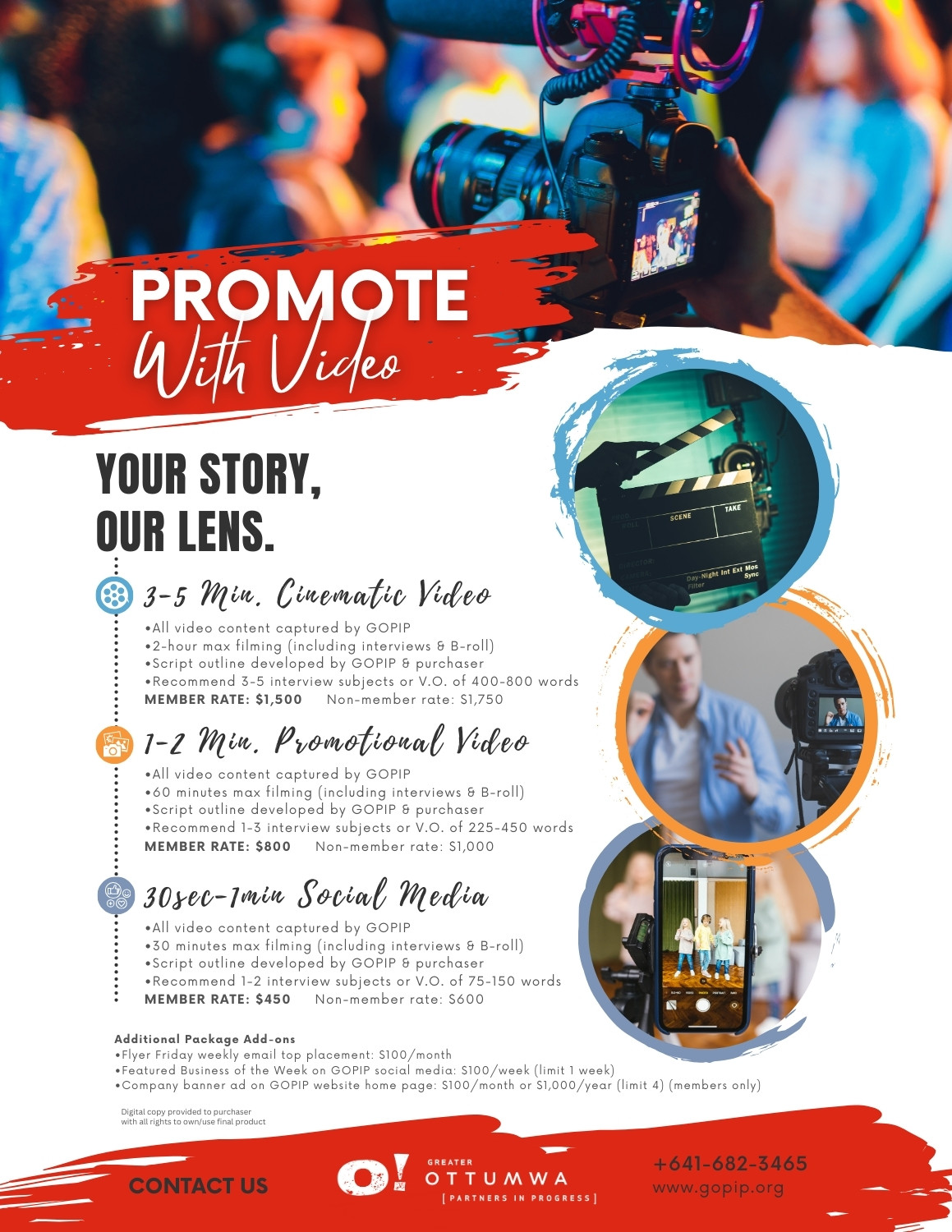 These promotional opportunities are designed to be flexible, effective, and community-driven—helping you tell your story while supporting continued economic growth in Ottumwa. To learn more about available options, pricing, and scheduling, contact Jason at jason@ottumwaiowa.com today.